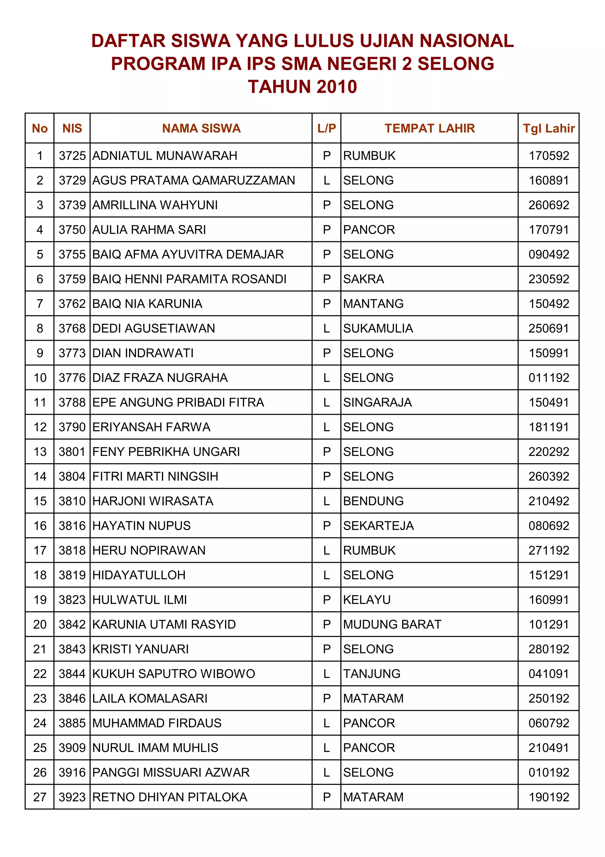 DAFTAR SISWA YANGLULUS UJIAN NASIONAL
