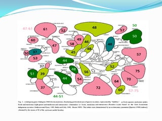 Rolf Dahlgren was a Danish botanist who published an influential plant classification system in 1975. He used a two-dimensional graphic system called a Dahlgrenogram to display phylogenetic relationships among plant groups. Dahlgren's system was based primarily on morphological and chemical characteristics and divided angiosperms into 31 superorders within two subclasses. While comprehensive, it considered only flowering plants and did not classify below the family level. Subsequent molecular studies have revised placements of some families from Dahlgren's system.