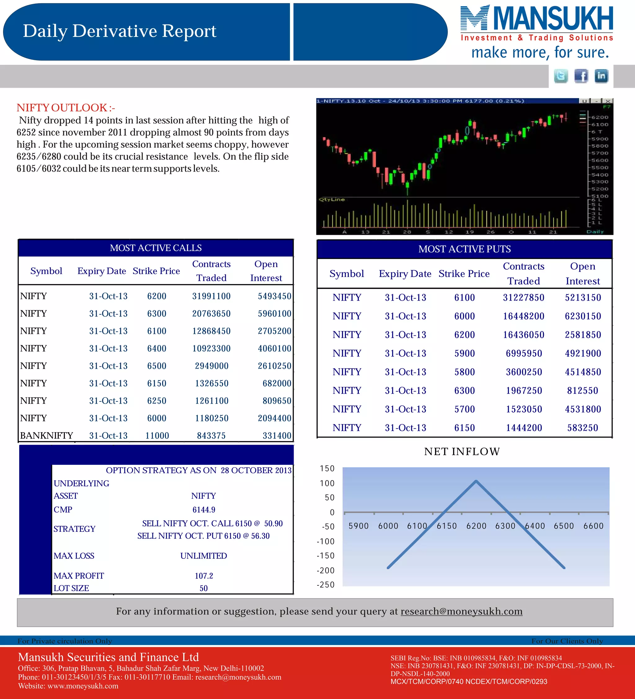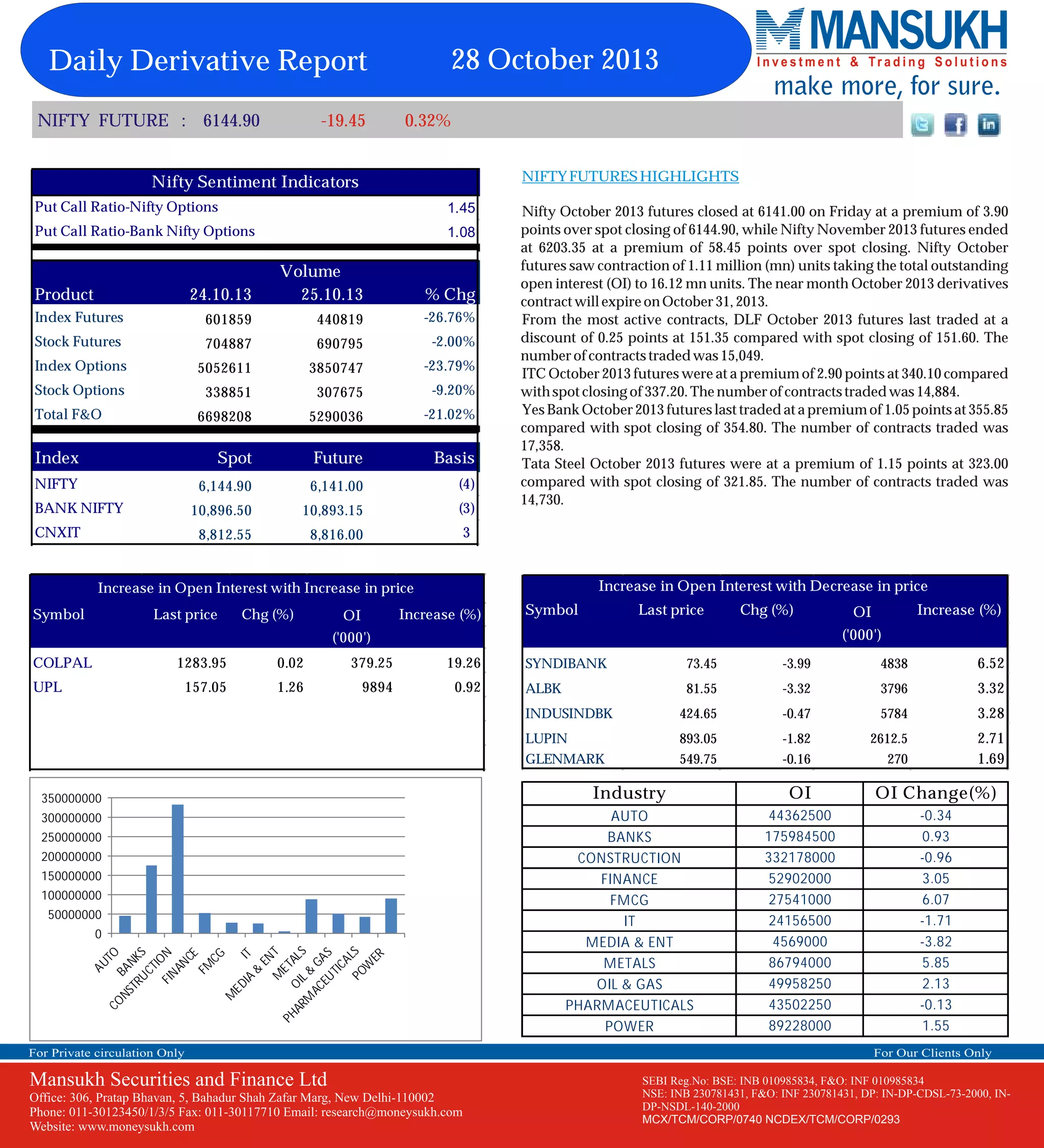 - NIFTY futures closed at 6,141, down 19.45 points (0.32%) from the previous day's close.