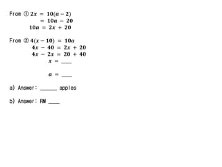 𝟒(𝒙 − 𝟏𝟎) = 𝟏𝟎𝒂 --- ②