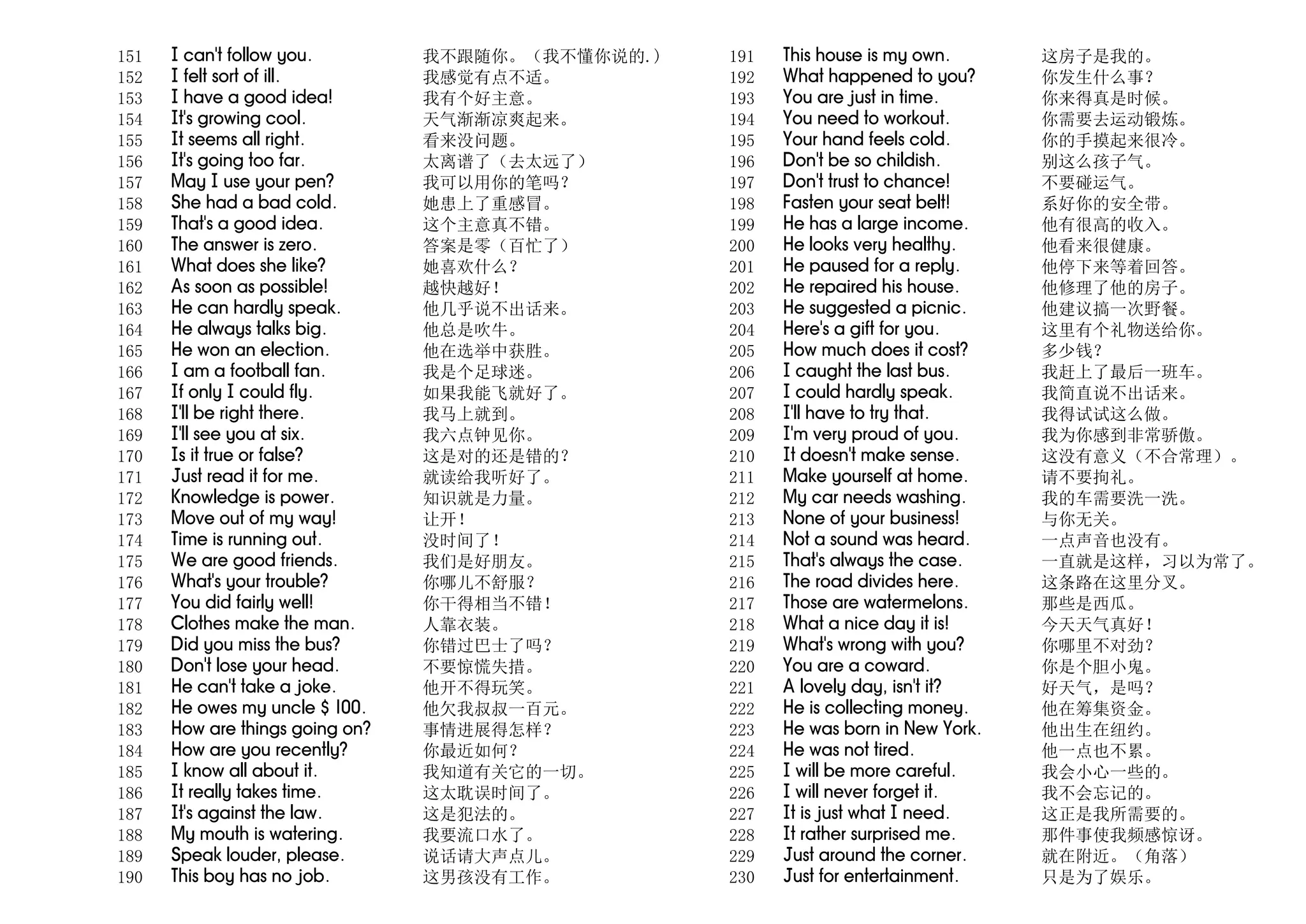 This document contains 300 sentences in Chinese with their English translations. It provides vocabulary examples covering a wide range of everyday topics including greetings, family, weather, activities, opinions, and questions. The sentences demonstrate different grammatical structures and tenses in both Chinese and English.