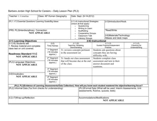 The daily lesson plan is for an AP Human Geography class taught by J. Cornelius. The objectives are for students to review material and complete a class test covering the recently studied unit. Instructional strategies include questioning and cooperative groups. Materials include atlases and desk maps. The class will be spent reviewing concepts for the test and having students complete the test. Tests and informal checks for understanding will assess student mastery of objectives. Reteaching and tutorials will be provided for students who do not demonstrate learning.