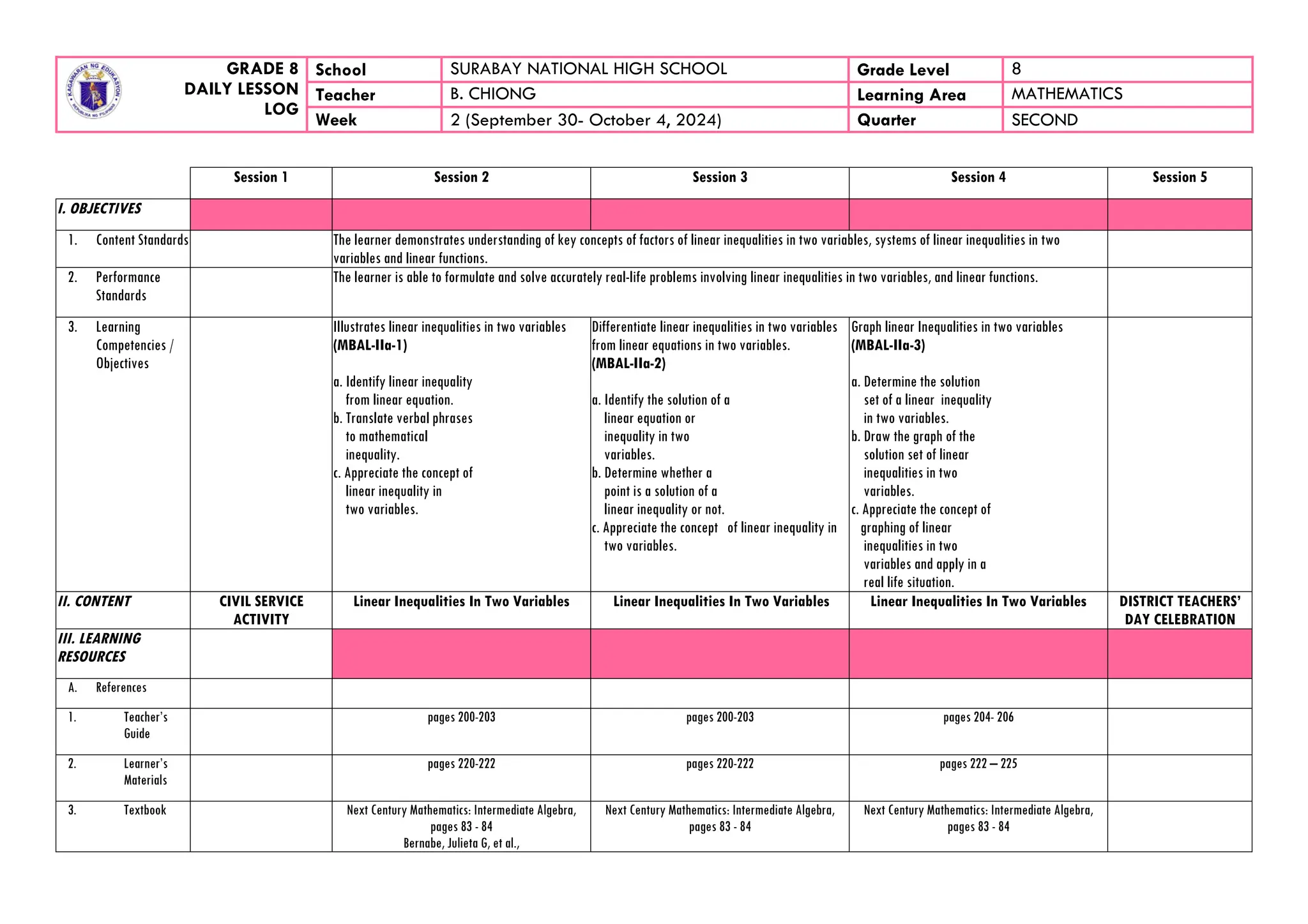 Linear Inequalities In Two Variables Linear Inequalities In Two Variables Linear Inequalities In Two Variables DISTRICT TEACHERS’
