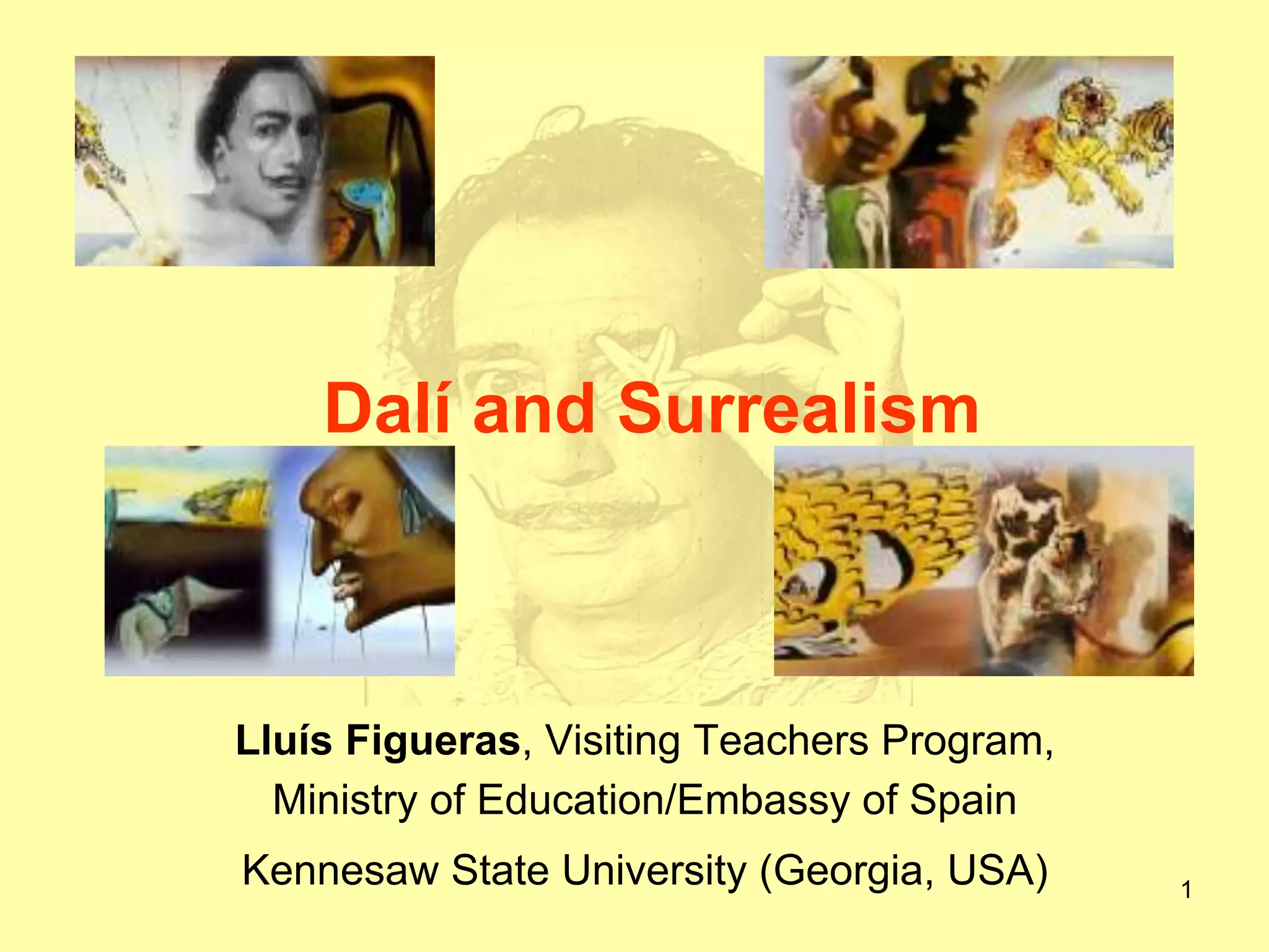 The document provides an extensive overview of Salvador Dalí and the surrealism movement, detailing Dalí's life, family background, relationships, key artistic influences, and significant accomplishments. It highlights notable quotes, the 'paranoiac critical method' used in his work, and his complex dynamic with his muse, Gala. Additionally, the document discusses Dalí's impact on art and his legacy through the Dalí-Gala Foundation.