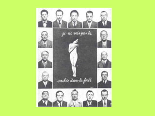 This document provides a chronological overview of Salvador Dali's life and work between 1926-1940. It describes his early influences and transition to surrealism. Key events include his collaborations with Luis Bunuel on films like Un Chien Andalou in 1929. He gained recognition for works like The Persistence of Memory in 1931. The document also outlines his exhibitions around the world, illustrations for publications, and expanding career throughout the 1930s until he was expelled from the surrealist group and fled to the US with his wife Gala in 1940 to escape the German occupation of France.