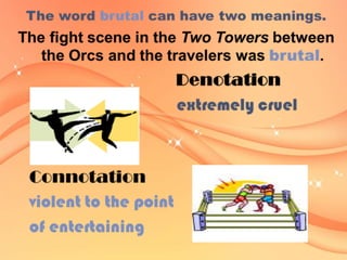 3. Descriptions of sense and denotation, dealing with relationships within language and the literal meaning of words, respectively.