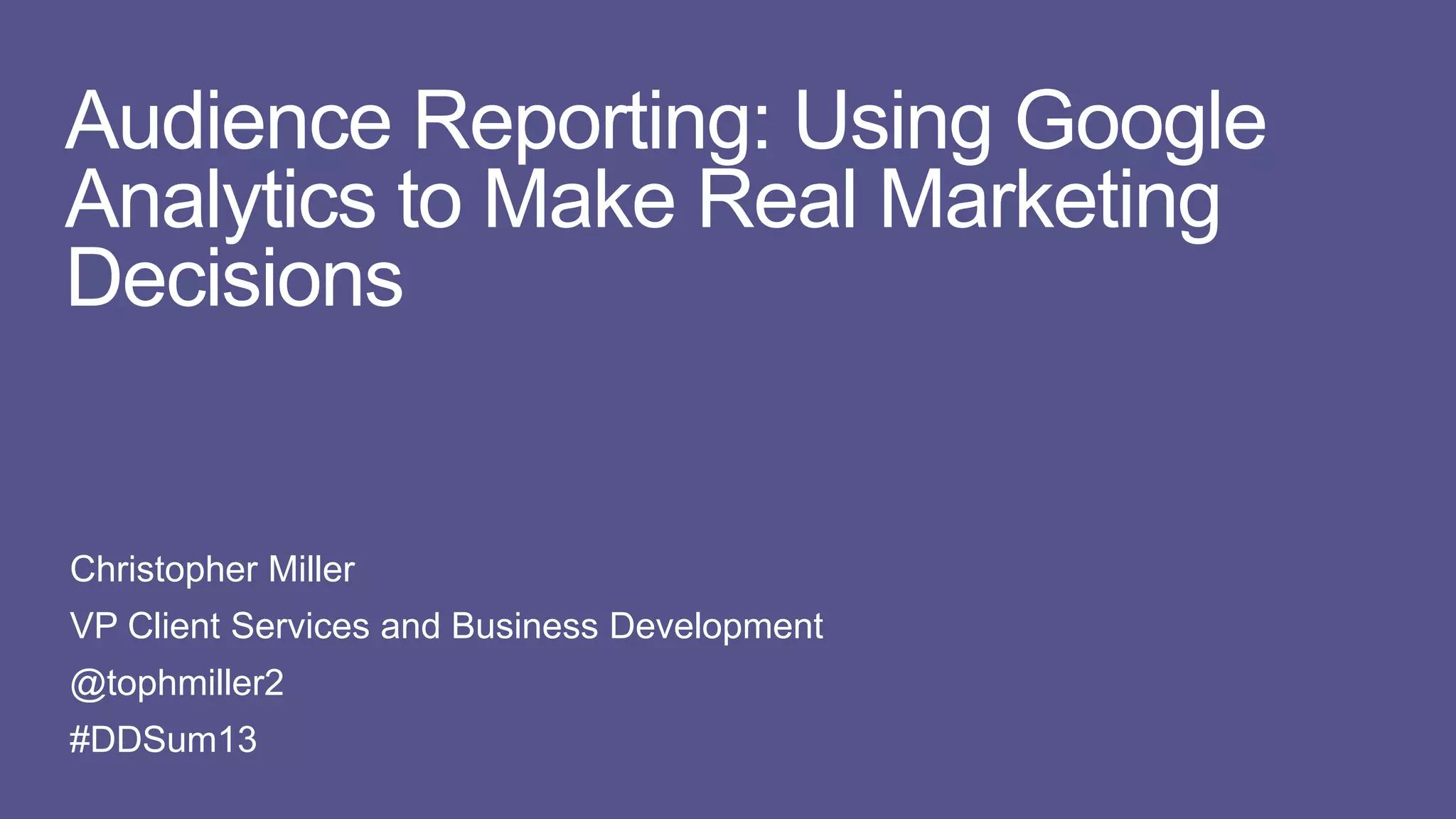 This document summarizes a presentation about using Google Analytics audience reports to make marketing decisions. It discusses how the audience reports provide information on user demographics like age, gender, interests and buying intentions. It also shows how a client was able to segment their audience to learn that news-reading females aged 45-54 converted best from email marketing. Based on this insight, the client tailored their content, events and marketing approaches, resulting in increased bookings and revenue.