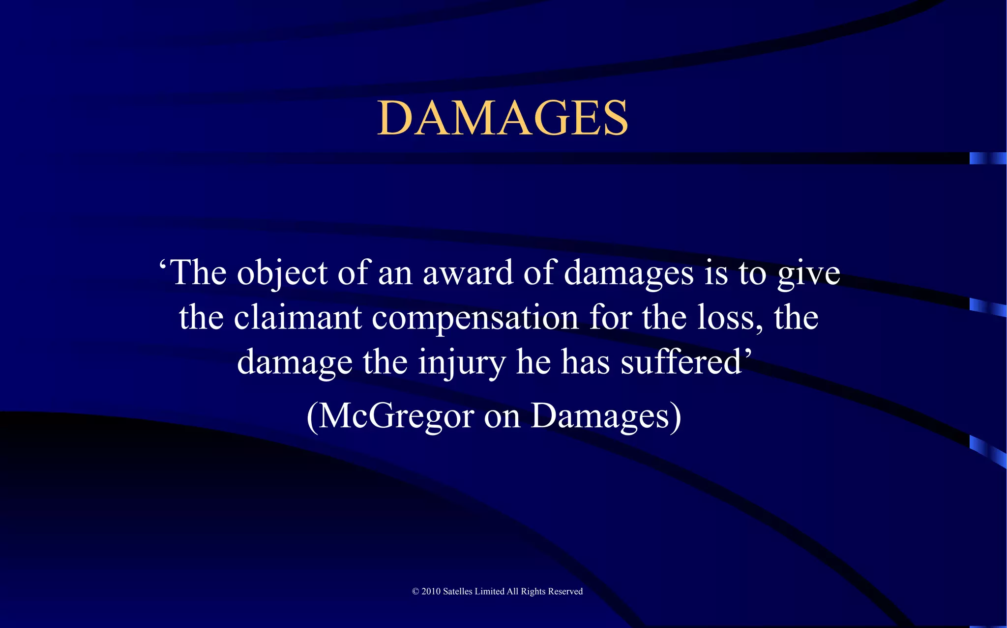 The document discusses different types of damages in contract law including compensatory damages, liquidated damages, and penalties. It states that compensatory damages aim to put the injured party in the same position as if the contract had been performed, liquidated damages are a pre-estimate of damages from breach but can be penalties if unreasonable, and penalties will not be enforced by courts.