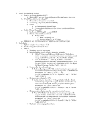 This document provides guidance on performing high-quality CPR and resuscitation. It emphasizes the importance of uninterrupted chest compressions, minimizing interruptions for things like intubation or rhythm checks. It also recommends biphasic defibrillation for shockable rhythms and questions the benefits of epinephrine and mechanical CPR devices compared to manual CPR. The document advocates for focusing on compressions, defibrillation when needed, and avoiding hyperventilation during resuscitation efforts.