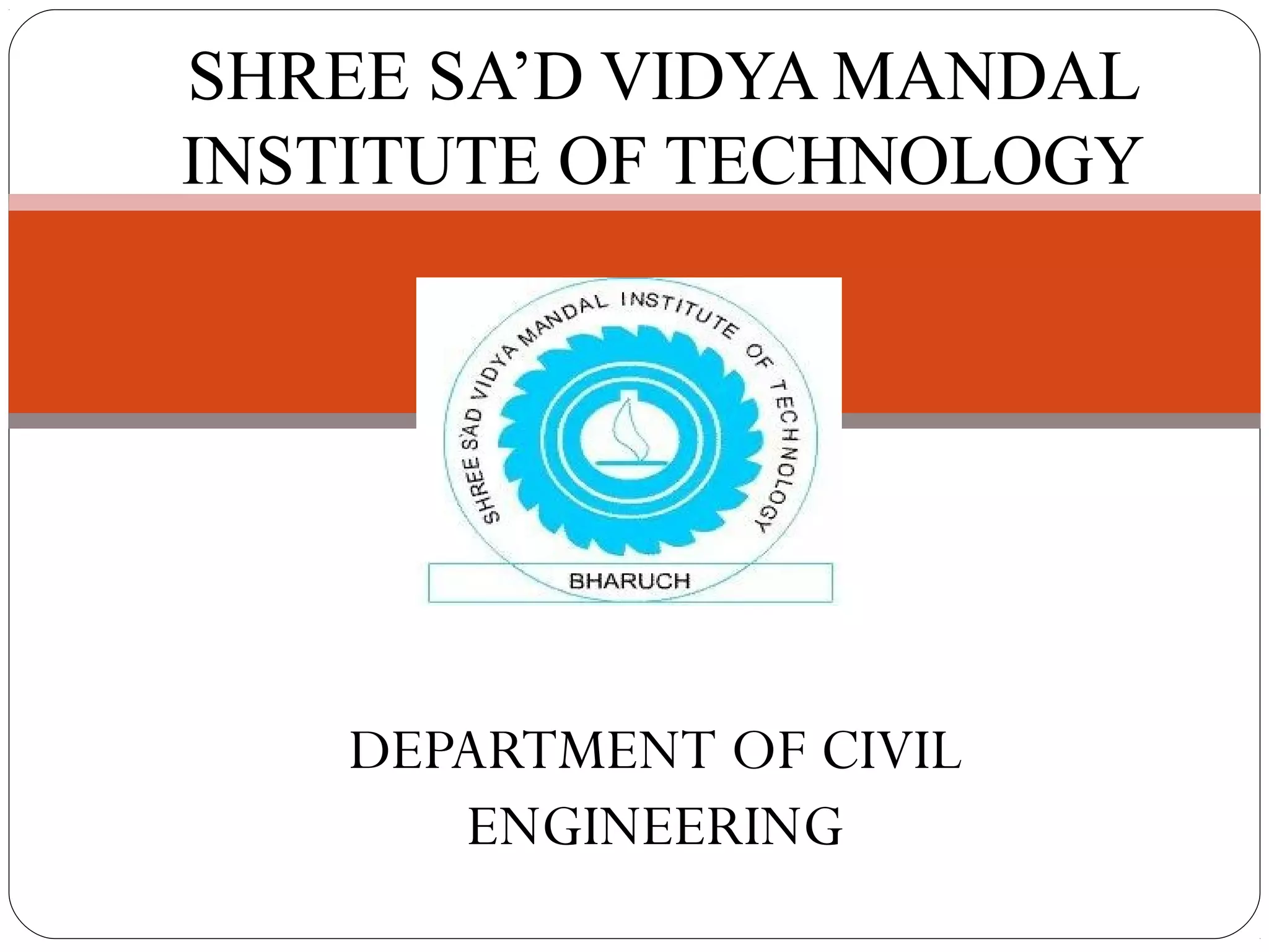 SHREE SA’D VIDYAMANDAL INSTITUTE OF TECHNOLOGY DEPARTMENT OF CIVIL ENGINEERING
