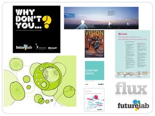 A whole range of Futurelab projects that have investigated the nature of mobile learning, the opportunities and challenges it presents – set within this new educational paradigm. – what tools and approaches build on this new approach? www.futurelab.org.uk/projects