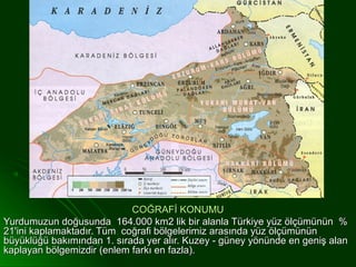 21'ini kaplamaktadır. Tüm coğrafi bölgelerimiz arasında yüz ölçümünün
