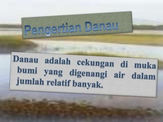 Danau adalah cekungan di muka bumi yang digenangi air dalam jumlah relatif banyak. Terbentuk dari berbagai proses seperti tektonik, vulkanik, erosi, dan sungai. Memiliki berbagai manfaat seperti sebagai sumber air minum, listrik, perikanan, dan rekreasi.