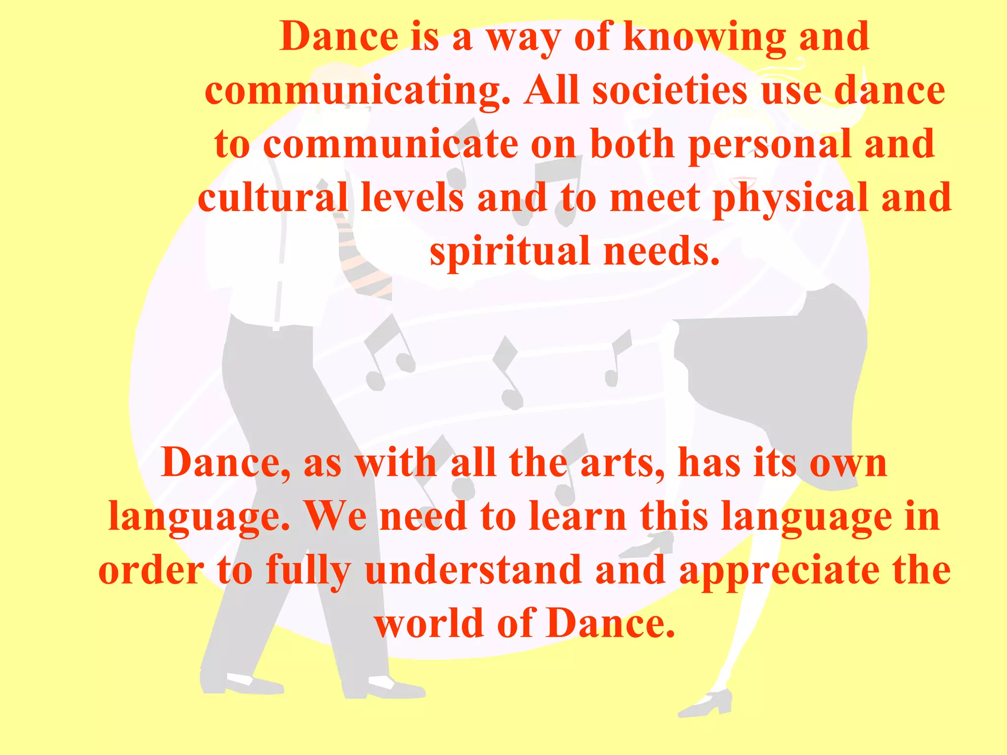 Dance is a form of communication that uses elements like time, space, and force to convey meaning. There are different choreographic forms including theme and variations and rondo that structure dance. Styles of dance like ballet, tap, jazz, and modern each have their own characteristics in terms of movement, music, costumes, and terminology.