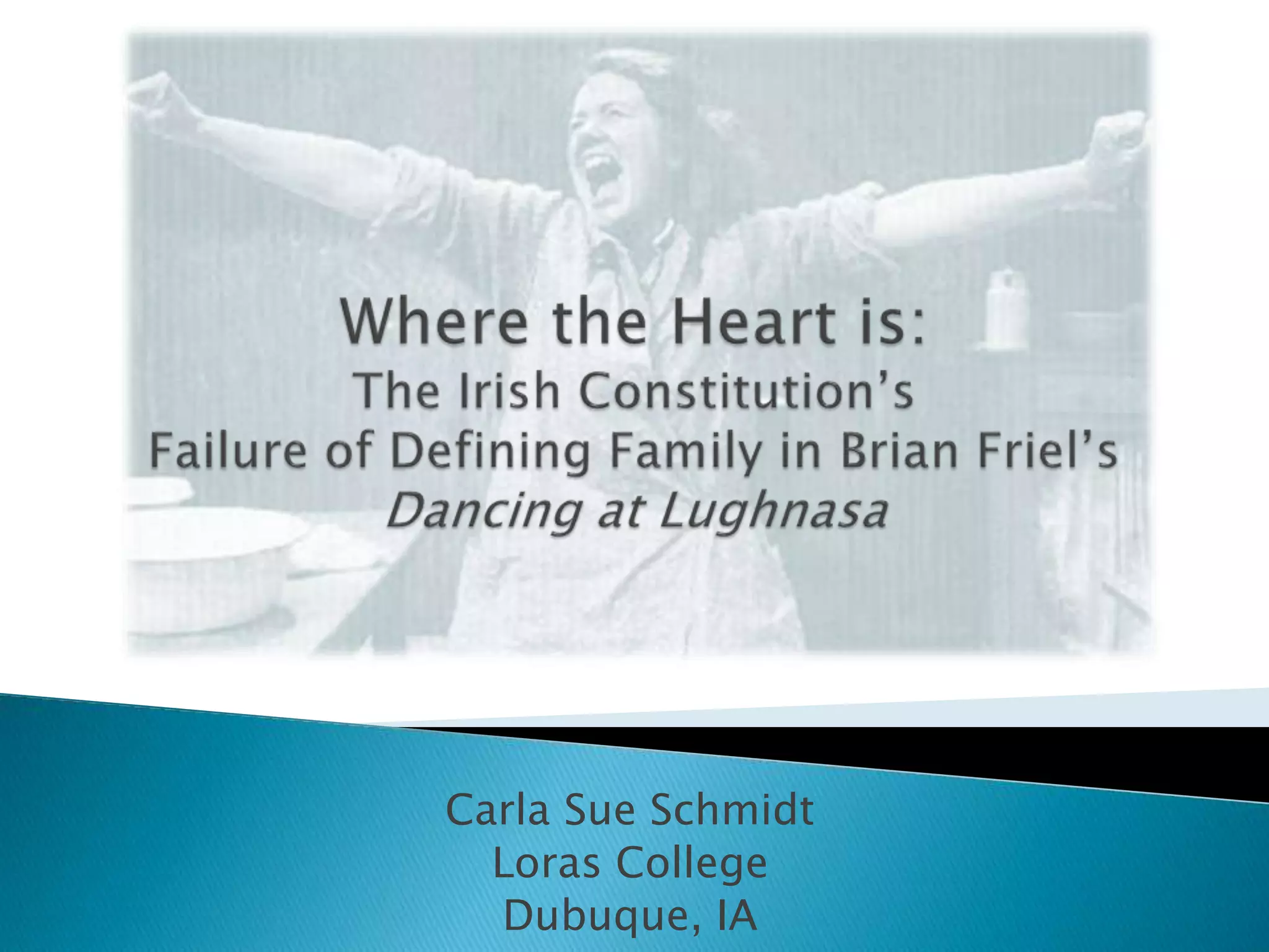 This document summarizes and analyzes Brian Friel's play "Dancing at Lughnasa". It discusses the play's depiction of an Irish family in the 1930s and how their lives were impacted by Article 41 of the Irish Constitution of 1937 which promoted traditional gender roles. The play contrasts the family's past happiness and independence before these laws with their struggles afterwards, when two sisters were forced to emigrate and the others took on roles they disliked. The analysis concludes the play was making a statement about negative changes to Irish society and family structures brought about by the conservative constitution.