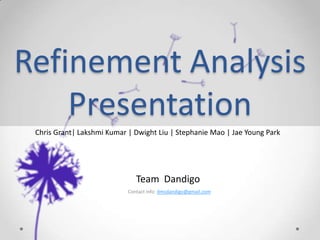 The team presented a proposal for a mobile news headline service in Rwanda called "Rwanda Headlines". It would allow citizens to submit news headlines via SMS and get paid. Surveys showed citizens would provide headlines for payment and subscribe if free. The service would partner with NGOs and news agencies. It was proposed as a way to empower citizens and sell citizen journalism to organizations. The team requested $180,000 to pilot the service for 9 months in Kigali and rural areas using SMS, voice, and mobile payments.