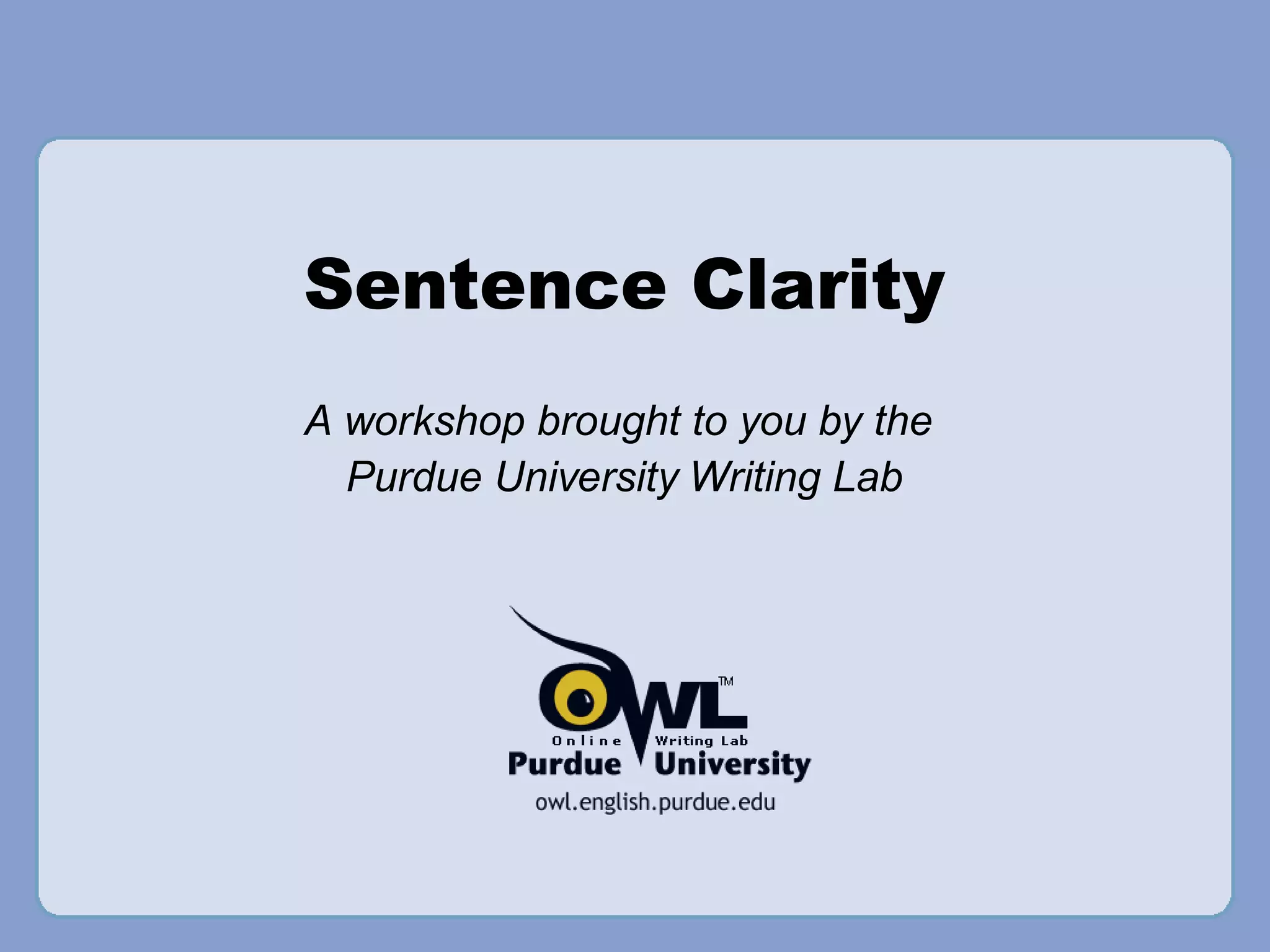 The document discusses improving sentence clarity through proper use of parallel structure and avoiding misplaced and dangling modifiers. It defines these grammatical concepts and provides examples of sentences with and without the issues. Guidelines are given for identifying and correcting problems with modifiers and ensuring parallel structure in lists, phrases, and clauses.
