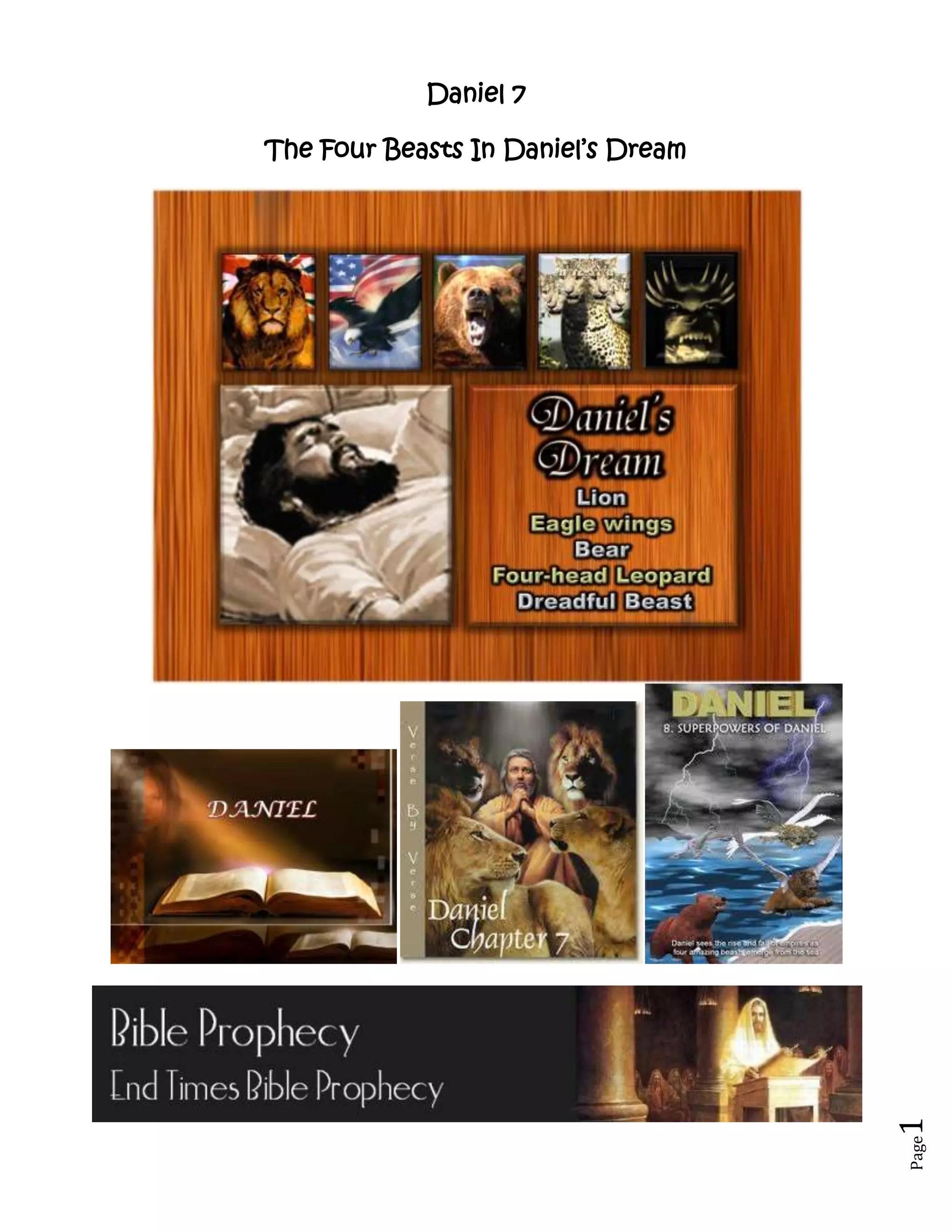 The document discusses Daniel's dream in Daniel 7 of four beasts coming out of the sea. It provides interpretations of the dream: