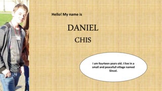 Daniel is a 14-year-old boy who lives in the small, peaceful village of Sîncel with his mother Laura, father Levente, brother Alexander, and sister Diana. He enjoys spending time with his family and friends, and likes activities such as driving his ATV, skiing, playing computer games, watching football matches of his favorite team Barcelona, and spending time with his dog Pablo.