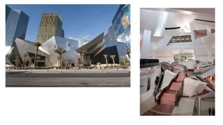 Daniel Libeskind is a Polish-American architect known for pioneering the deconstructivist style. Some of his most notable works include the Jewish Museum Berlin completed in 2001, which features an irregular, fragmented design. Libeskind's practice founded the Studio Daniel Libeskind in 1989. He is influenced by deconstructionist principles such as rejecting symmetry and using disproportionate volumes.