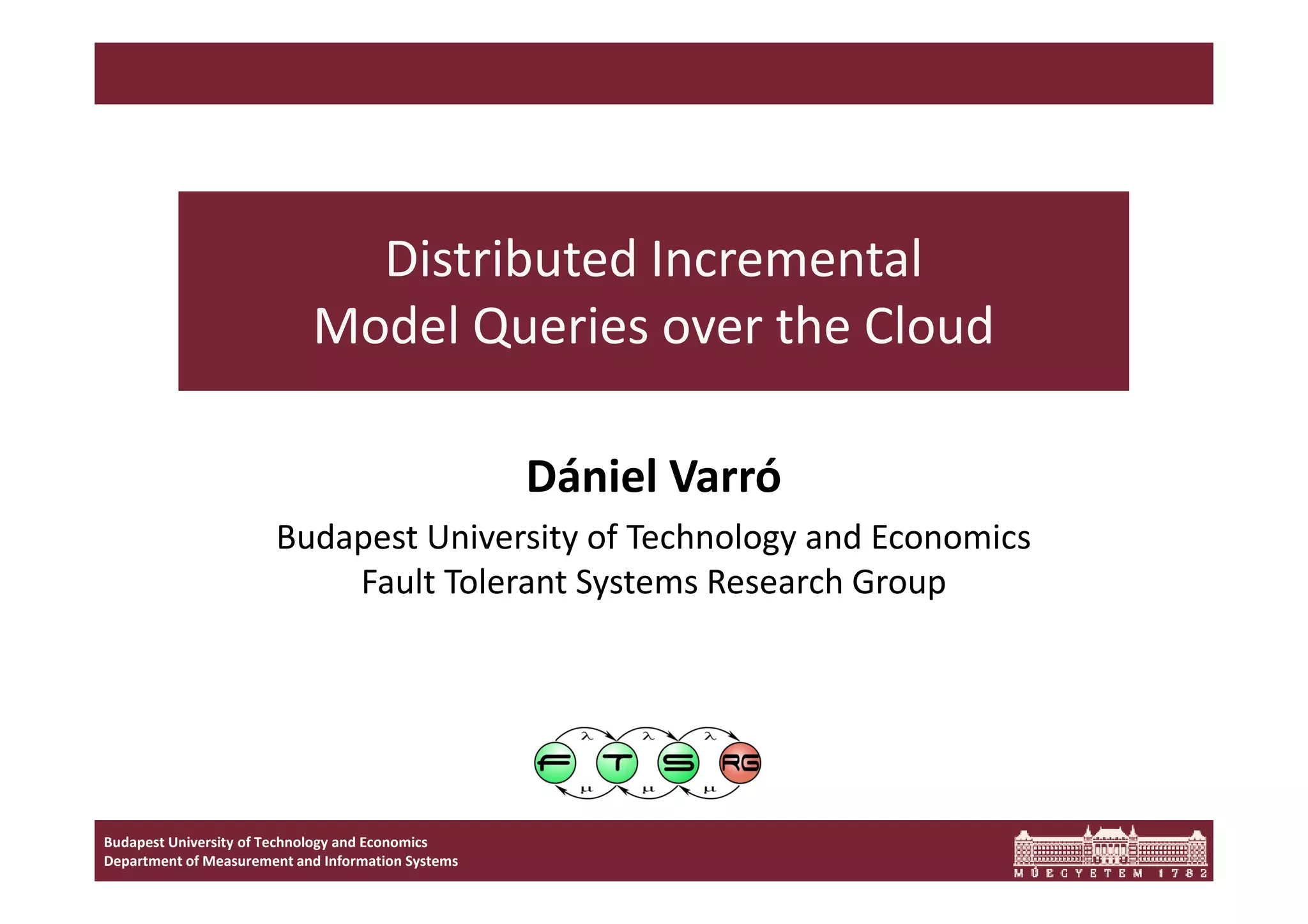 The document discusses the development and implementation of distributed incremental model queries in cloud systems, specifically focusing on the EMF-IncQuery framework which addresses change detection in cyber-physical systems (CPS). It highlights challenges faced in managing large models relevant to industries like automotive and avionics, as well as the architecture and performance benchmarks of the IncQuery-D system designed for efficient distributed query evaluation. Key components include advanced query languages, incremental evaluation techniques, and deployment in cloud environments to enhance scalability and performance.