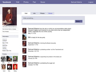 1) The document provides biographical information about Samuel Adams, an American statesman and revolutionary leader who helped spearhead the American Revolution.