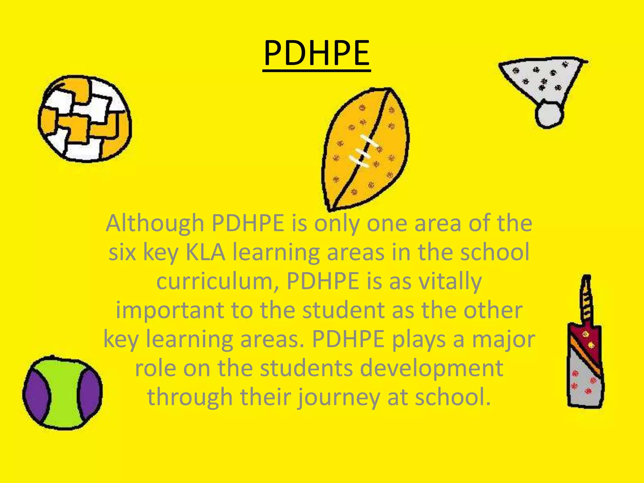 PDHPE (Personal Development, Health and Physical Education) is an important part of the school curriculum that plays a major role in students' development. It promotes healthy lifestyles by educating children about physical activity and its benefits. PDHPE also helps students develop positive social relationships through team sports and activities that encourage communication, conflict resolution, and cooperation skills. The curriculum further aims to promote healthy lifestyle choices and a safe learning environment.