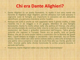 Dante Alighieri, poeta fiorentino del XIII secolo, è noto per la sua opera principale, 'La Divina Commedia', scritta durante il suo esilio da Firenze. La sua vita è stata segnata da conflitti politici e da un amore idealizzato per Beatrice, che ha ispirato gran parte della sua scrittura. Morì nel 1321 a Ravenna, lasciando un'opera che esplora la condizione umana attraverso un viaggio nell'aldilà.