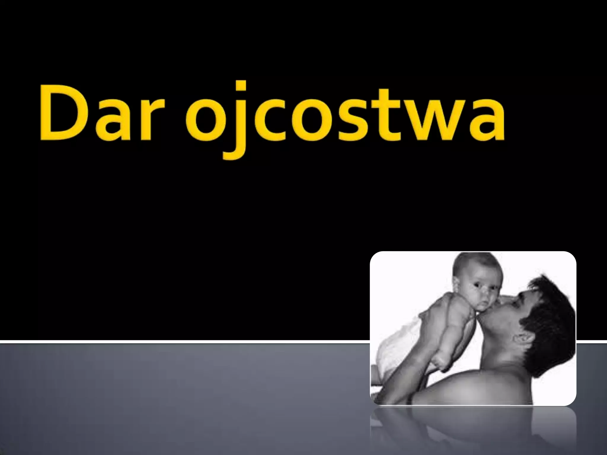 Czym jest darojcostwa?Dar ojcostwa jest ściśle związany z macierzyństwem, ponieważ rodzi się ze wzajemnej miłości współmałżonków. Poczęte dziecko przenosi miłość rodziców w wymiar nieskończony. Mężczyzna poprzez zjednoczenie seksualne staje się współpracownikiem Boga w dziele stwórczym, dlatego spoczywa na nim ogromna odpowiedzialność za płodność kobiety. Naturalną drogą realizacji powołania do ojcostwa jest akt małżeński, podczas którego może dojść do zapłodnienia kobiety.Źródłem teologii ojcostwa jest prawda wiary mówiąca, że Bóg jest Ojcem Jezusa Chrystusa i wszystkich ludzi (por. Mt 7,21; Mt 5,45). Pomijając różnice ontologiczne, trzeba stwierdzić, że Ojcostwo Boga jest źródłem i prawzorem wszelkiego ojcostwa na ziemi (por. Ef 3,14-15). Podobieństwo do Boga wskazuje mężczyźnie sposób realizacji ojcowskiego powołania.Właściwy obraz Boga-Ojca ukazuje Biblia, która przedstawia Boga w kontekście Jego dzieł zbawczych, począwszy od wybrania swego ludu, aż po wydanie swego Syna, by odkupić swój lud i wyzwolić go z jego grzechów. Bóg Biblii jest: