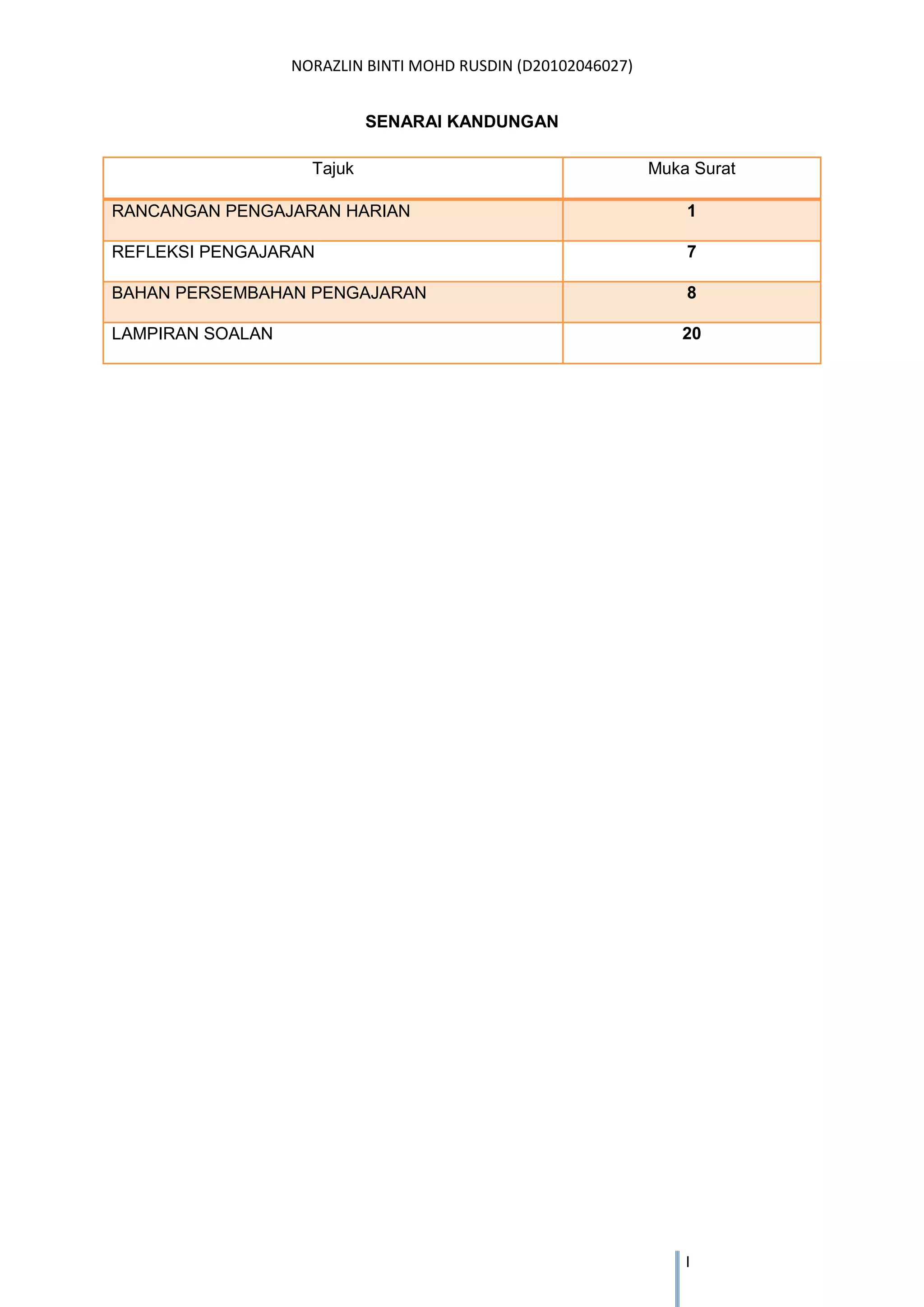 Muka Surat RANCANGAN PENGAJARAN HARIAN 1