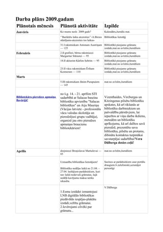 Darba plāns 2009.gadam