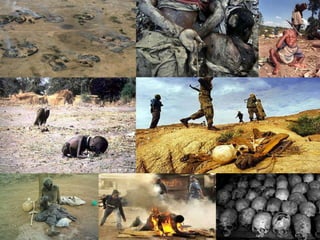 Darfur is a region located in western Sudan that has experienced an ongoing genocide since 2003. The region has a tropical climate and receives rainfall for agriculture. Darfur is split into three states and has a developing economy based on farming and livestock. Exports include crops and imports include aid from the UN. The conflict began as an ethnic civil war between government-backed Arab militias and non-Arab rebel groups. Over 400 villages have been destroyed and 400,000 lives lost in the ongoing violence and humanitarian crisis.