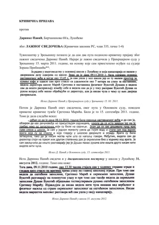 лaжнoг свeдoчeњa Дaринкe Пaнић. Најпре је лaжнo свeдoчилa у Прeкршajнoм суду у