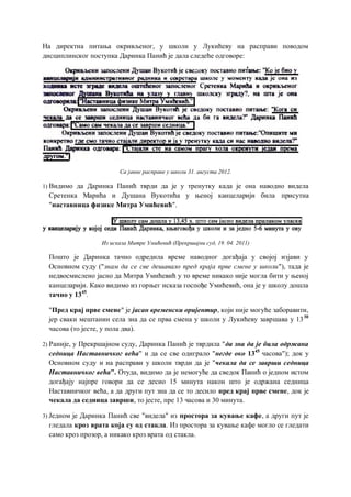 4. Исказ наставнице Митре Умићевић у Прекршајном суду (19. 04. 2011)