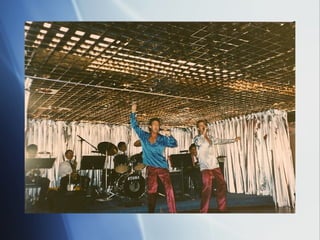 The document appears to be a biography or retrospective of an individual named Daron Bruce. It includes photos from his childhood, school years, performances in musical theater productions, and time as a teacher. The photos are not viewable as the document notes QuickTime and an uncompressed TIFF decompressor are needed. It highlights places he lived, schools he attended, shows he performed in, and colleagues from his career.