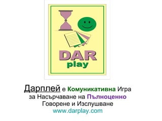 Дарплей е Комуникативна Игра за Насърчаване на Пълноценно Говорене и Изслушване www.darplay.com