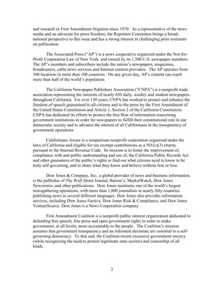 The document is an amicus letter brief submitted by media organizations including the Reporters Committee for Freedom of the Press to the Court of Appeal of California. The brief argues that the court's order sealing a reply brief and directing its return amounts to an unconstitutional prior restraint on speech. The order prevents the media from possessing and reporting information that was lawfully obtained. Prior restraints are strongly disfavored and the order should be vacated to avoid establishing a dangerous precedent restricting lawful publication.
