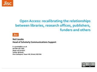The document outlines the changing roles and relationships among libraries, publishers, and funding bodies in the context of open access publishing. It highlights the rapid growth of the article processing charge (APC) market and the need for universities to manage compliance, financial liabilities, and publication data. Additionally, it discusses ongoing initiatives and support provided by Jisc to navigate these complexities and improve collaboration among stakeholders.