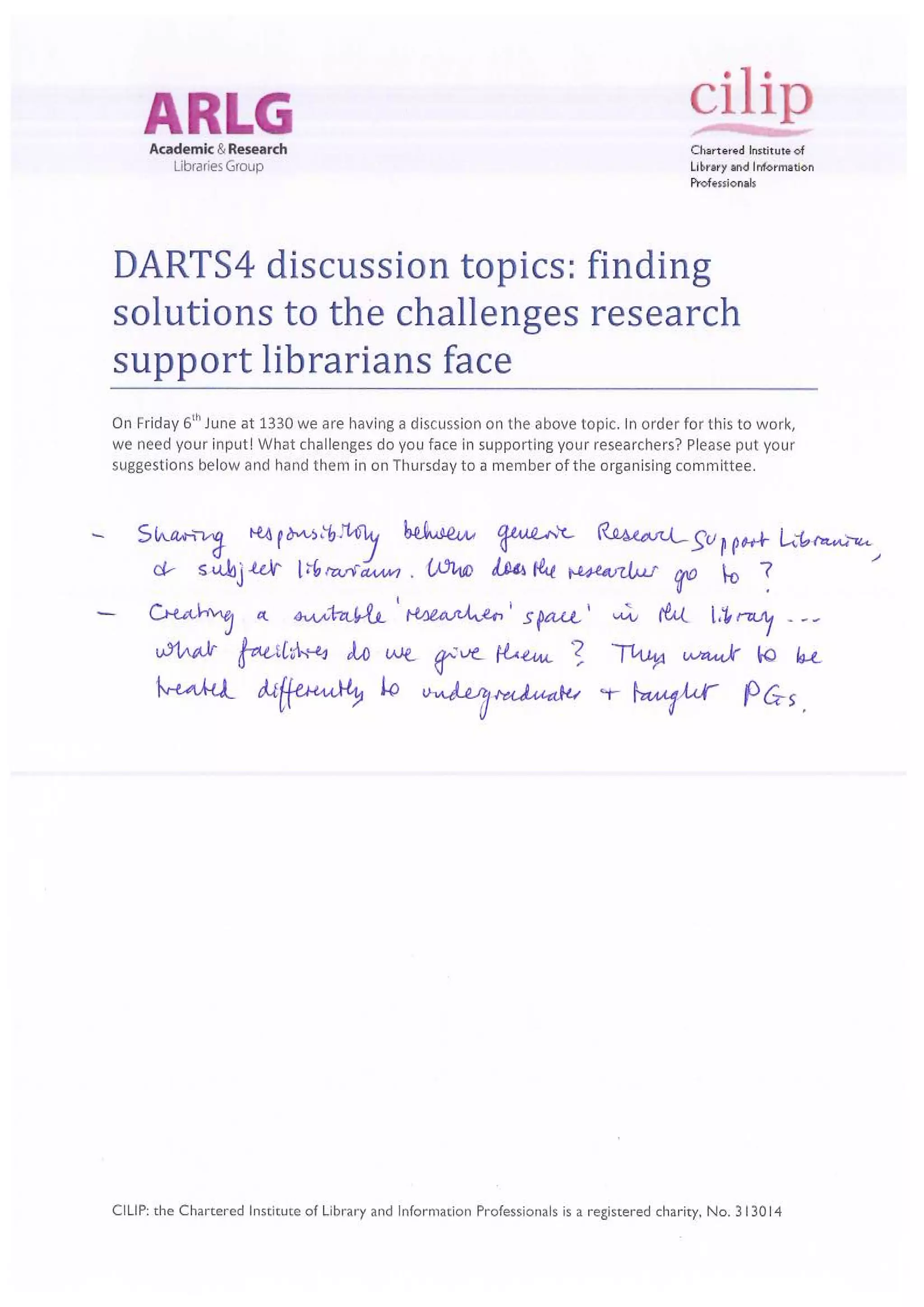 Challenges for discussion suggested by DARTS4 delegates
