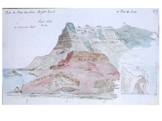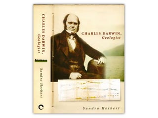 Charles Darwin was born in 1809 in England to an esteemed family with intellectual lineage. He studied medicine at university but found geology more interesting. His mentors introduced him to new ideas in geology and the emerging concept of deep time. In 1831, Darwin joined the HMS Beagle voyage as a naturalist. During the 5-year voyage, Darwin intensely studied geology, actively witnessed earthquakes and volcanic eruptions, discovered giant fossil mammals in Argentina, and began questioning theories about the fixity of species. His geological observations on the voyage formed the basis for his later theories about evolution and natural selection.