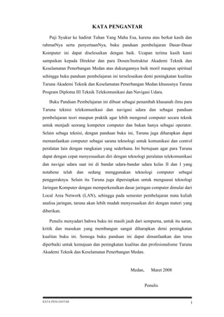 Buku panduan ini memberikan penjelasan tentang dasar-dasar komputer mulai dari komponen hardware, software, merakit komputer pribadi, instalasi sistem operasi Windows, Visual Basic, dan pengenalan jaringan komputer lokal."