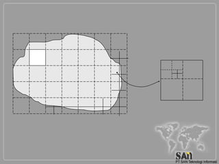 Dokumen ini membahas sistem manajemen informasi objek pajak (SISMIoP) yang mencakup dasar-dasar pemetaan, jenis-jenis peta, serta teknik akuisisi data pemetaan baik secara terestris maupun ekstra terestrial. Penjelasan mengenai metode-metode penentuan posisi horizontal dan vertikal, sistem proyeksi peta, serta cara menghitung luas juga diberikan. Selain itu, dokumen ini menyajikan informasi tentang komponen peta dan pertimbangan dalam pemilihan sistem proyeksi yang sesuai.