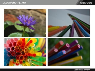 Dokumen ini membahas dasar pemotretan yang meliputi pemahaman alat fotografi, teknik pengaturan exposure, pengaruh diafragma terhadap ruang tajam, serta efek shutter speed pada obyek bergerak. Ditekankan juga bahwa kemampuan fotografer lebih penting dibandingkan kualitas kamera dalam menghasilkan foto yang baik. Kesimpulan mencakup empat poin kunci yang harus dikuasai oleh fotografer untuk menghasilkan foto yang artistik.