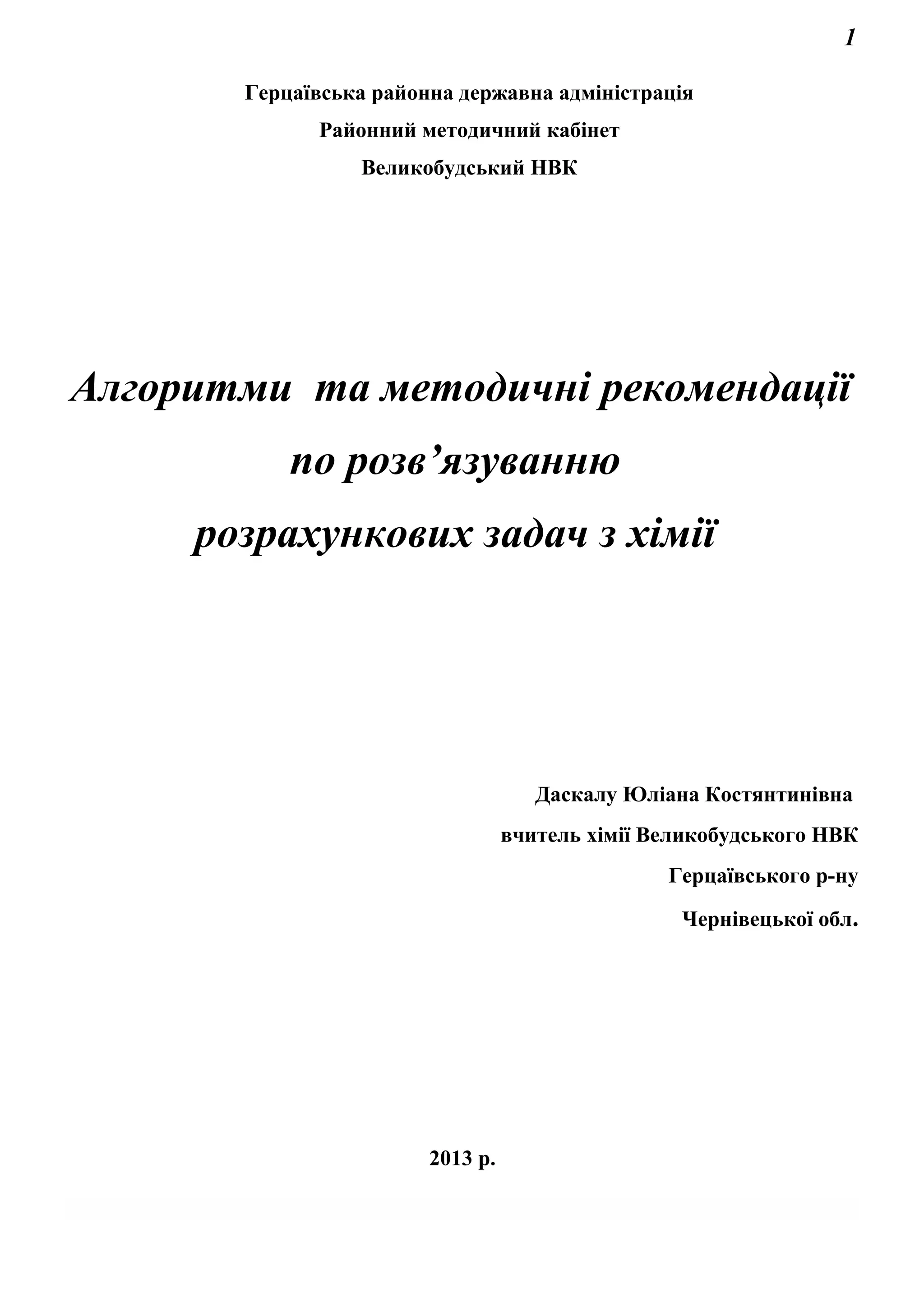 Хімія. Алгоритми та методичні рекомендації по розв’язуванню