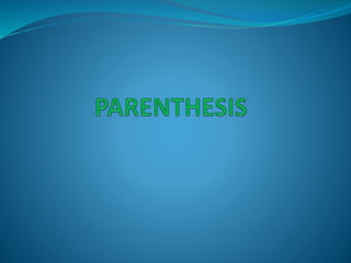 - Parentheses contain additional information or numbered/lettered lists, times with time zones, translations, and abbreviations with full terms.