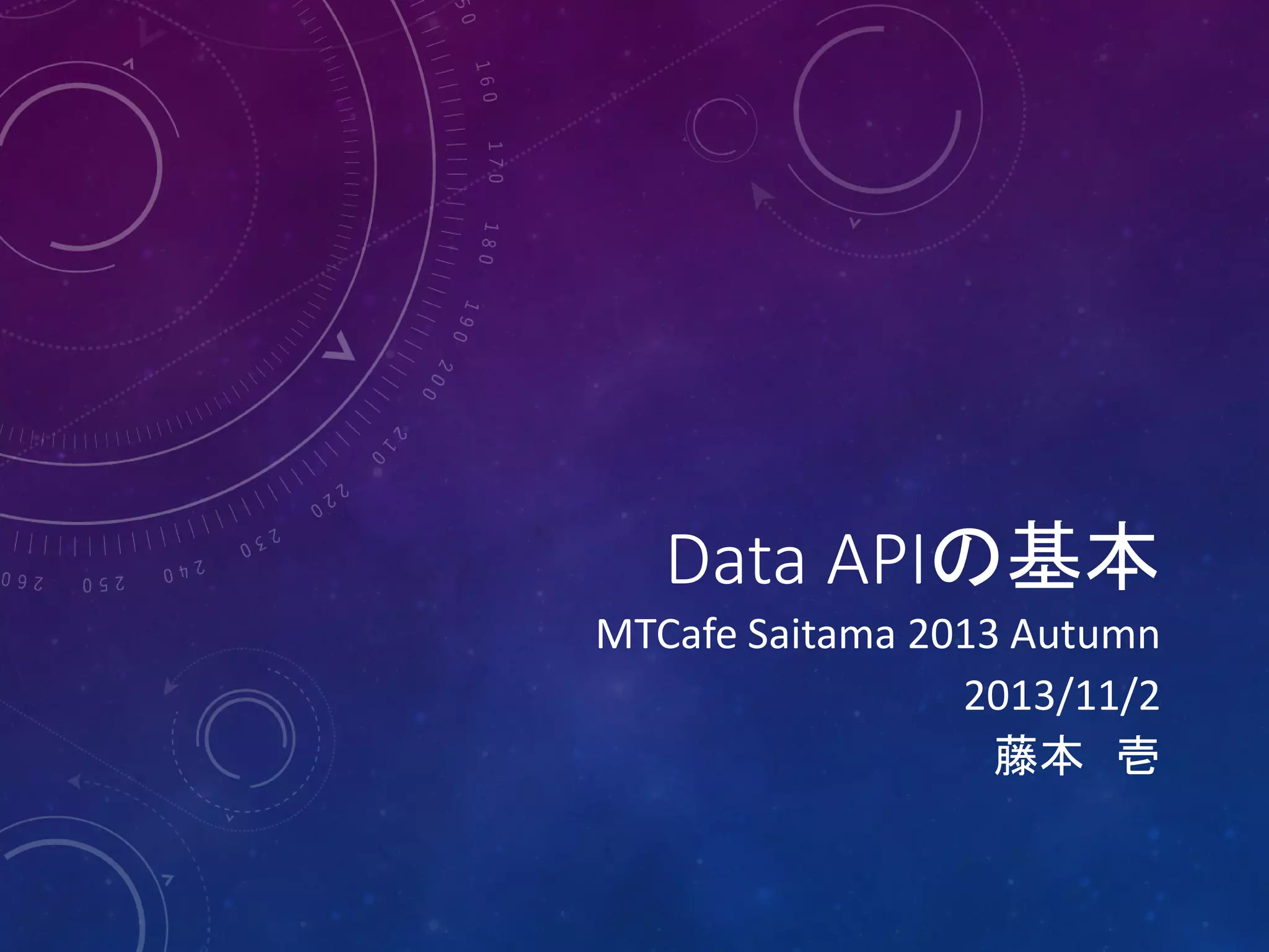 2013年11月2日開催の「MTCafe Saitama 2013 Autumn」のセッション「Data APIの基本」のスライドです