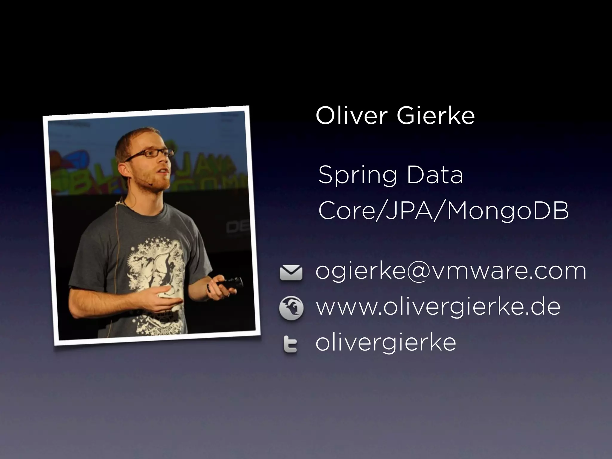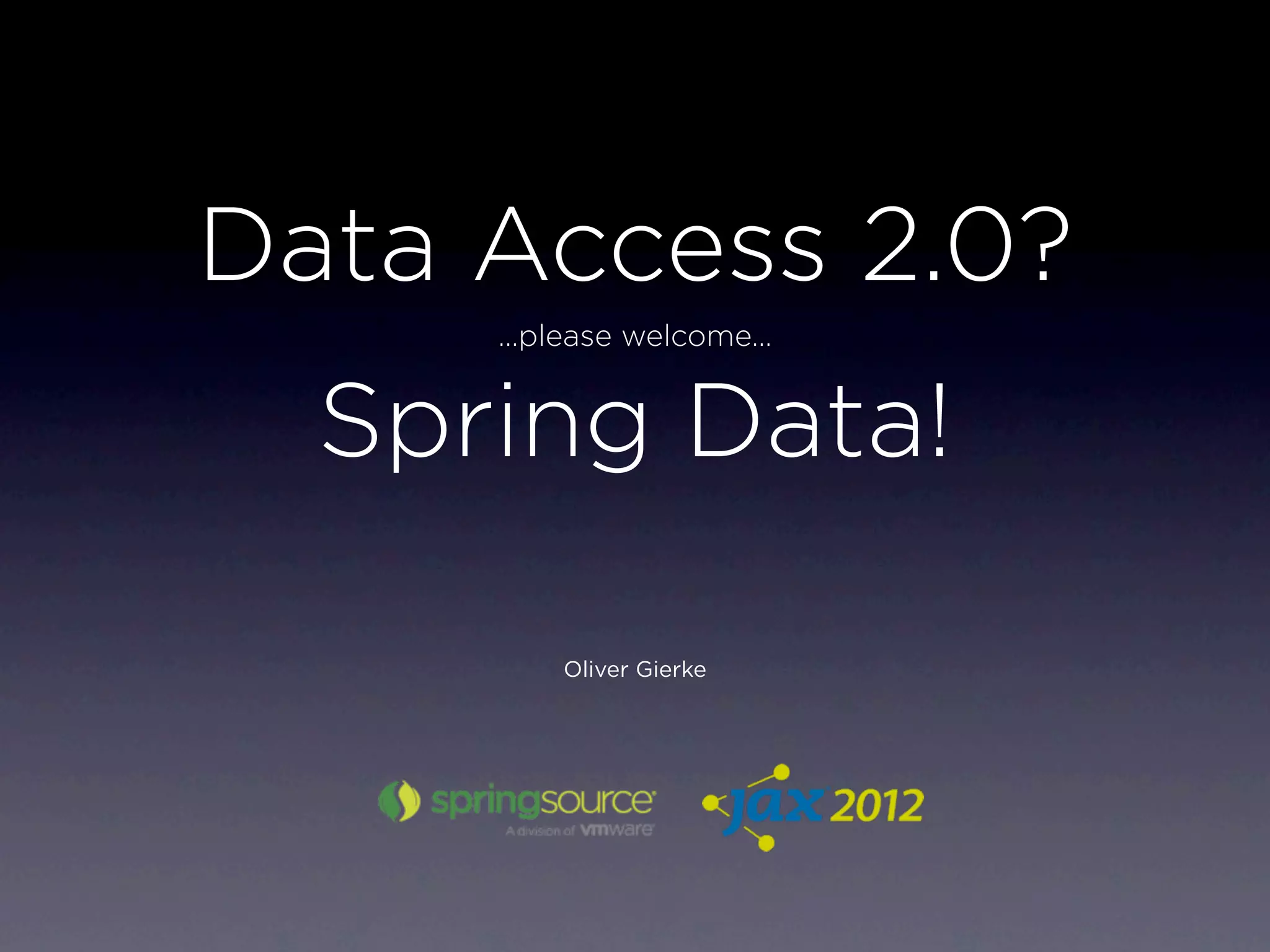 Spring Data provides a consistent programming model for data access while retaining store-specific features. It supports common repositories and query languages across relational, document, and graph databases. Spring Data includes sophisticated mapping support, template classes, query methods in repository interfaces, and integration of Querydsl for complex queries. It allows for cross-store persistence while also enabling specialized features like geospatial queries for MongoDB.
