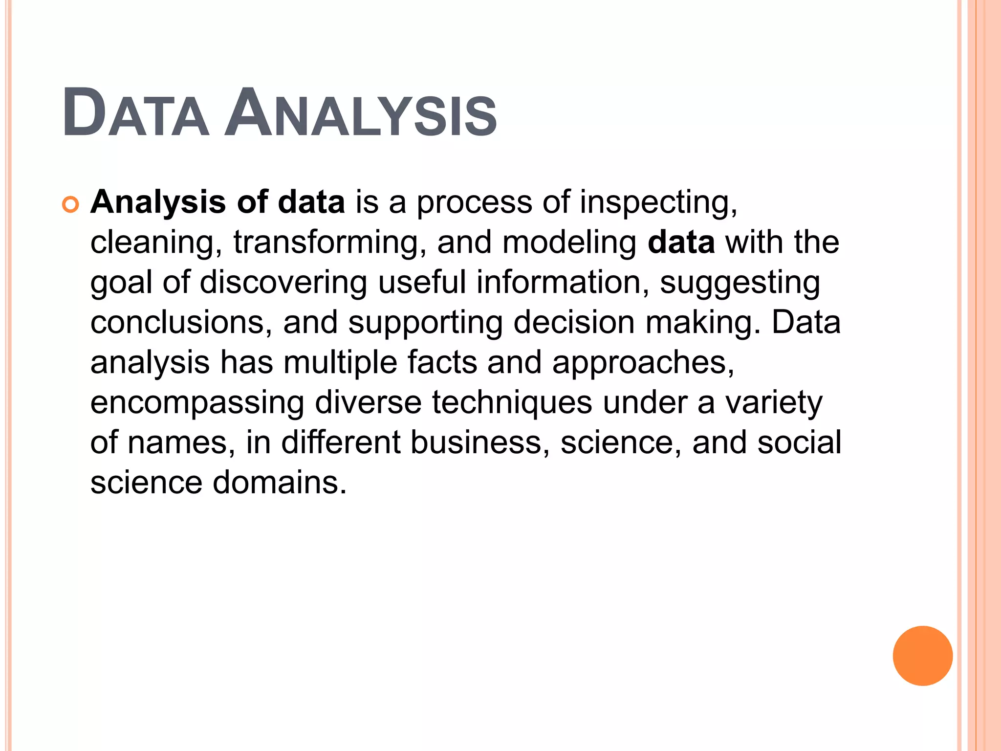 This document discusses various techniques for analyzing quantitative and qualitative data. It describes editing, coding, classification, and tabulation as methods for processing qualitative data. For quantitative data, it covers univariate analyses like measures of central tendency and dispersion. It also discusses bivariate analyses like correlation and regression, as well as multivariate techniques including multidimensional analysis, factor analysis, and cluster analysis. The goal of data analysis is to discover useful information and support decision making.