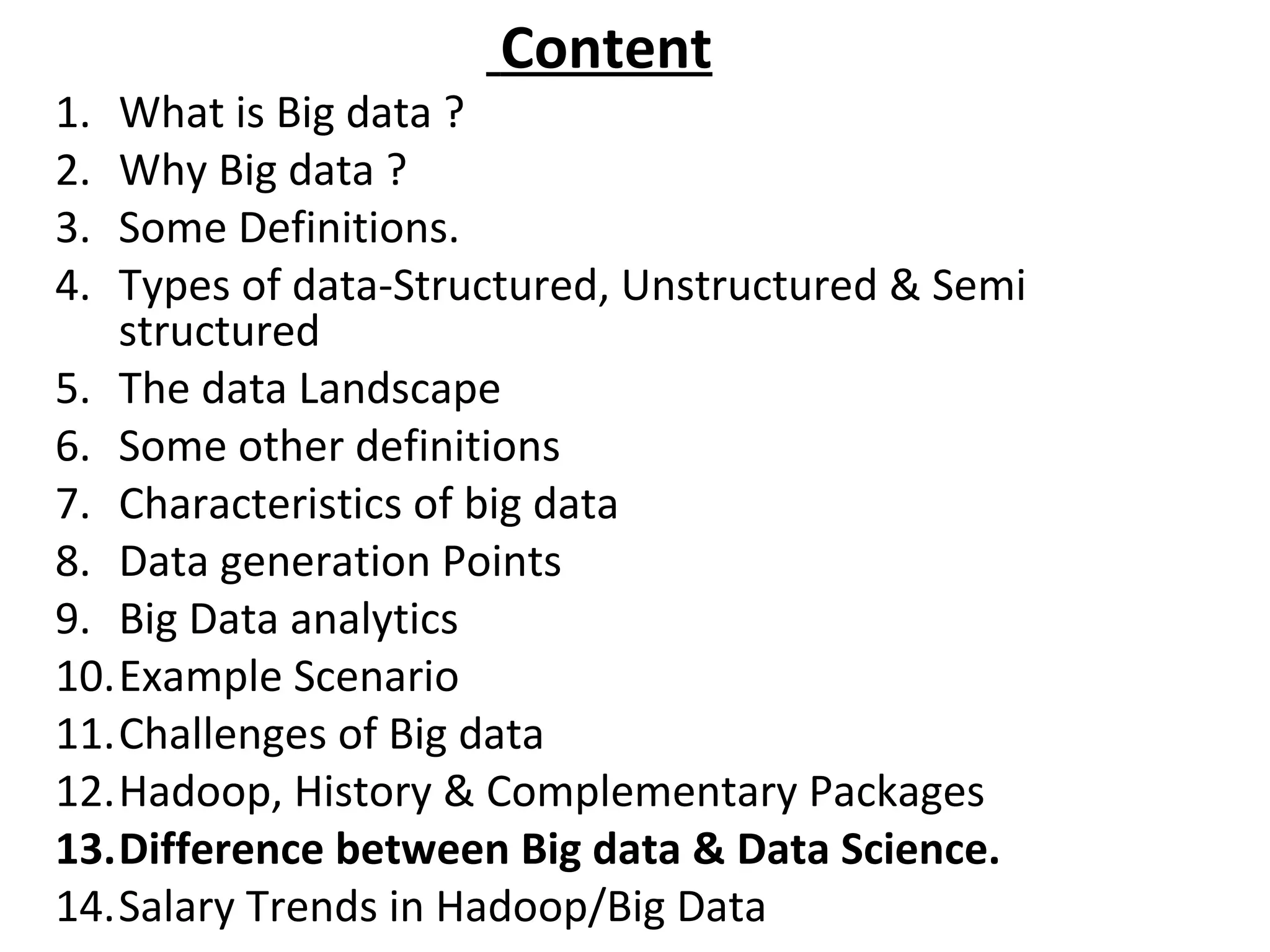 Big Data Analytics & Trends Presentation discusses what big data is, why it's important, definitions of big data, data types and landscape, characteristics of big data like volume, velocity and variety. It covers data generation points, big data analytics, example scenarios, challenges of big data like storage and processing speed, and Hadoop as a framework to solve these challenges. The presentation differentiates between big data and data science, discusses salary trends in Hadoop/big data, and future growth of the big data market.