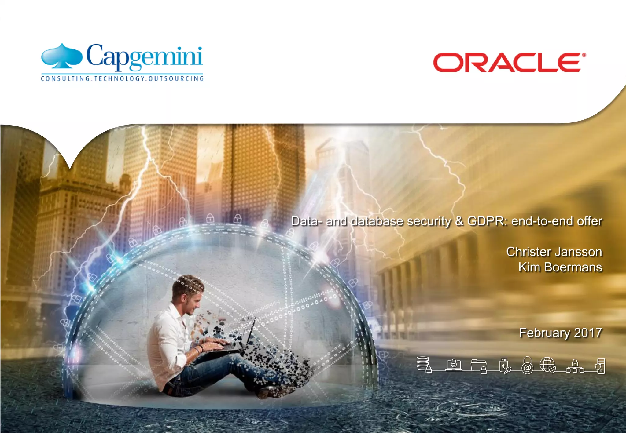 This document discusses Capgemini and Sogeti's end-to-end offering for database security and GDPR compliance. It outlines a four-phase approach including a GDPR readiness assessment, roadmap development, privacy impact assessment, and implementing database security solutions. Each phase has defined activities, timelines, and results to help organizations assess their GDPR compliance and secure databases containing personal data. The offering is designed to help organizations address new accountability and security requirements under the upcoming GDPR regulation.